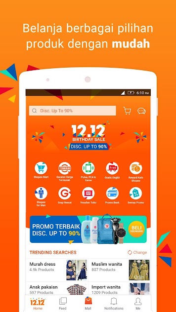 Aplikasi jual beli online Shopee 12.12 menyediakan aneka produk mulai dari pakaian, peralatan kantor, perabotan rumah tangga, kosmetik dan lainnya.